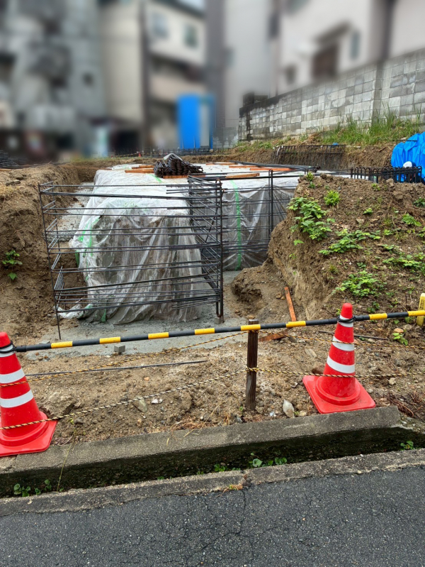 しっかりと地盤を掘削し、ベースコンクリート+鉄筋立ち上がりを施工