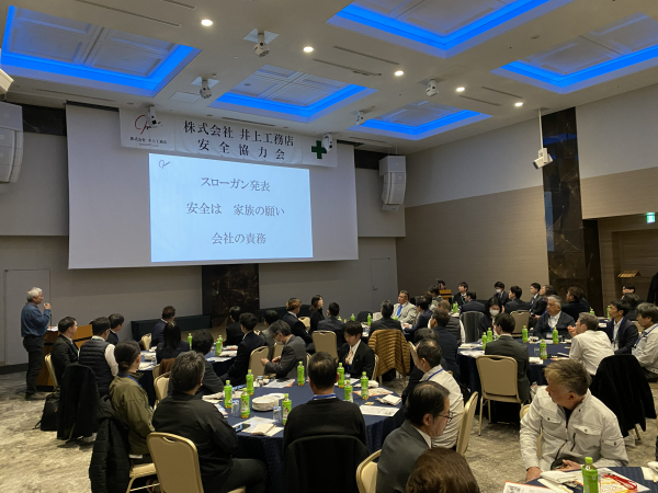 「安全協力会・懇親会」を機に、株式会社井上工務店は、社員一同が一体となり、協力会社様の皆様とも力を合わせ、より一層安全への取り組みを強化してまいります。